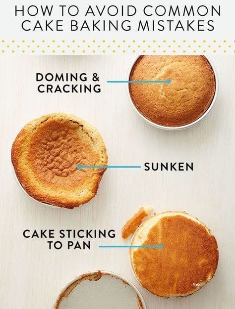 مثل الهبوط، التشققات، أو عدم توازن الكيك.